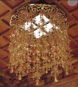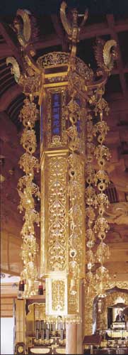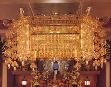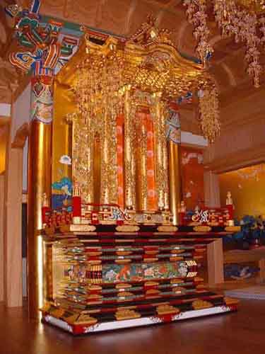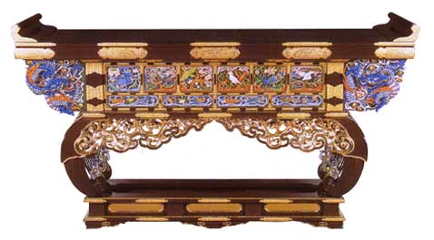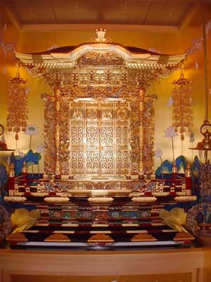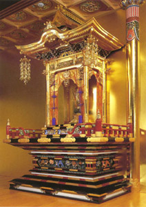 寺院仏具では宮殿・厨子・須弥壇・仏像・前机・上卓・経机・焼香机・香台・曲禄・椅子・具足・天蓋・幢幡・灯篭・輪灯
