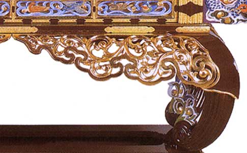 オリジナル前卓は袴部分が唐草透かし彫になっております。 その他机類も同様にできます。 |