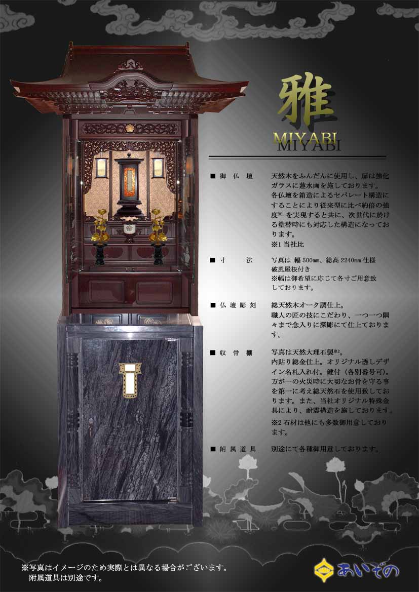 ※本体ベース及び収骨部はアルミ製、内部宮殿及び彫刻・屋根は木製となっております。